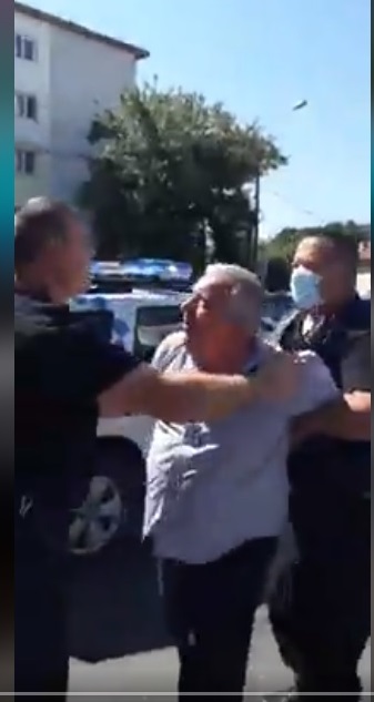 Scandal. Scene incredibile în centrul Bacăului. Un șofer de autobuz a fost încătușat pentru că nu purta mască