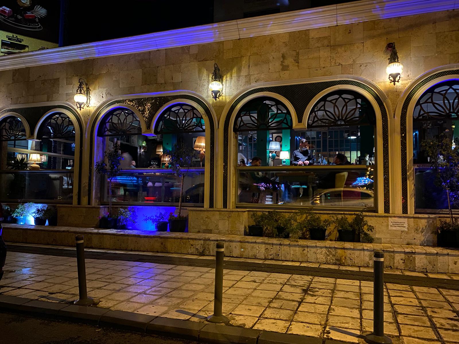 Oamenii stau liniștiți la masă în restaurantul Mandaloun din Capitală, deși ar trebui ca locația să fie închisă