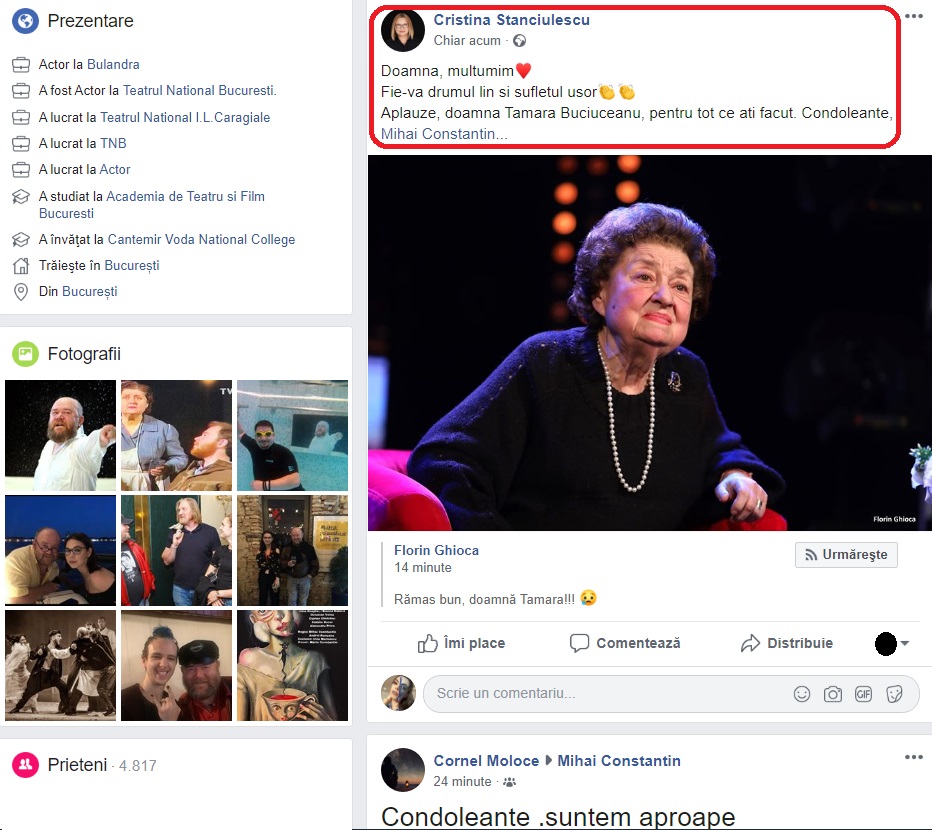 Sfâșietor! Mesajul transmis pe pagina de Facebook a nepotului Tamarei Buciuceanu-Botez la scurt timp după ce actrița a murit