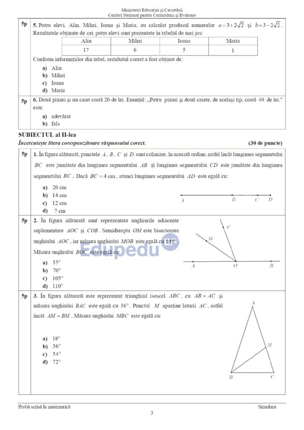 Simulare Evaluarea Națională 2026 subiectele la Matematică. Sursa foto: EduPedu
