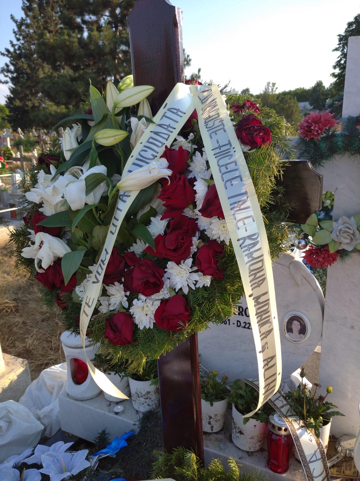 Surorile Gabor au trimis o coroană la mormântul tatălui lor