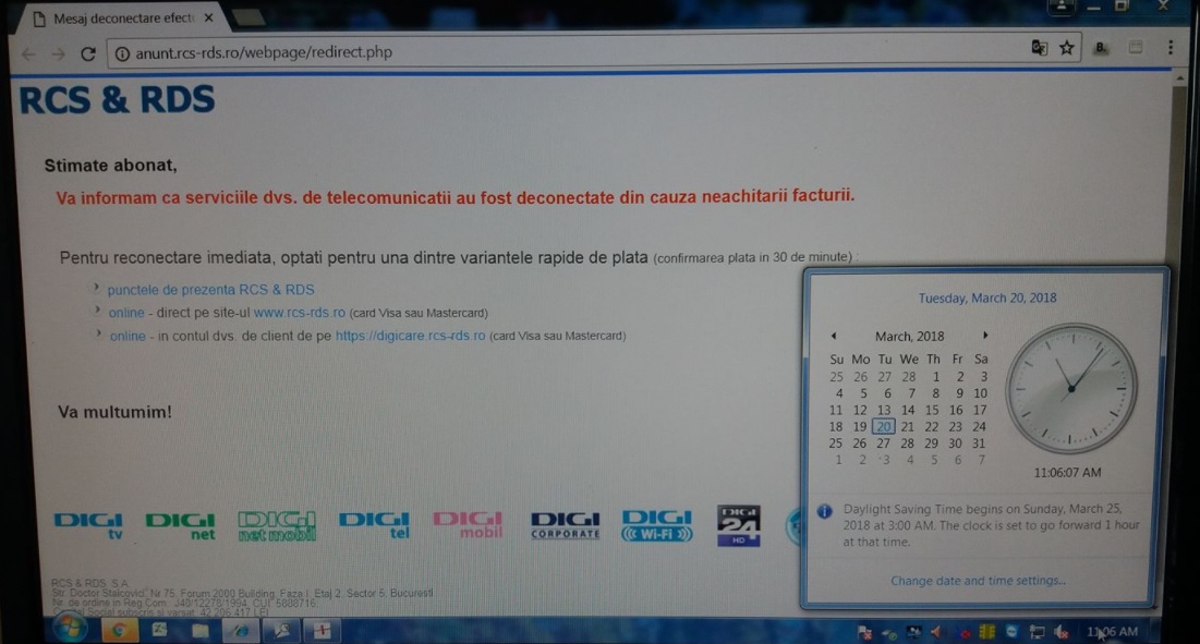 Mesajul afișat pe calculatoarele din Spitalul Județean de Urgență Alexandria