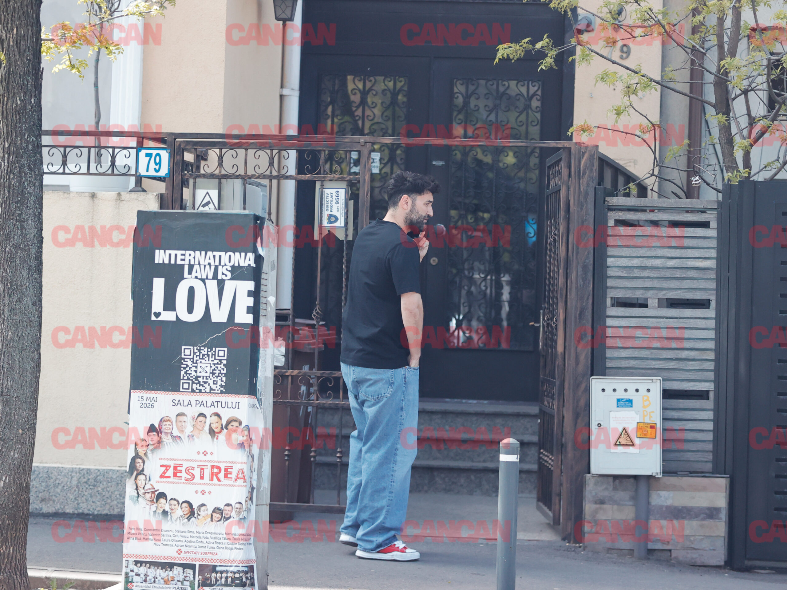 Artistul vorbește la telefon în fața salonului