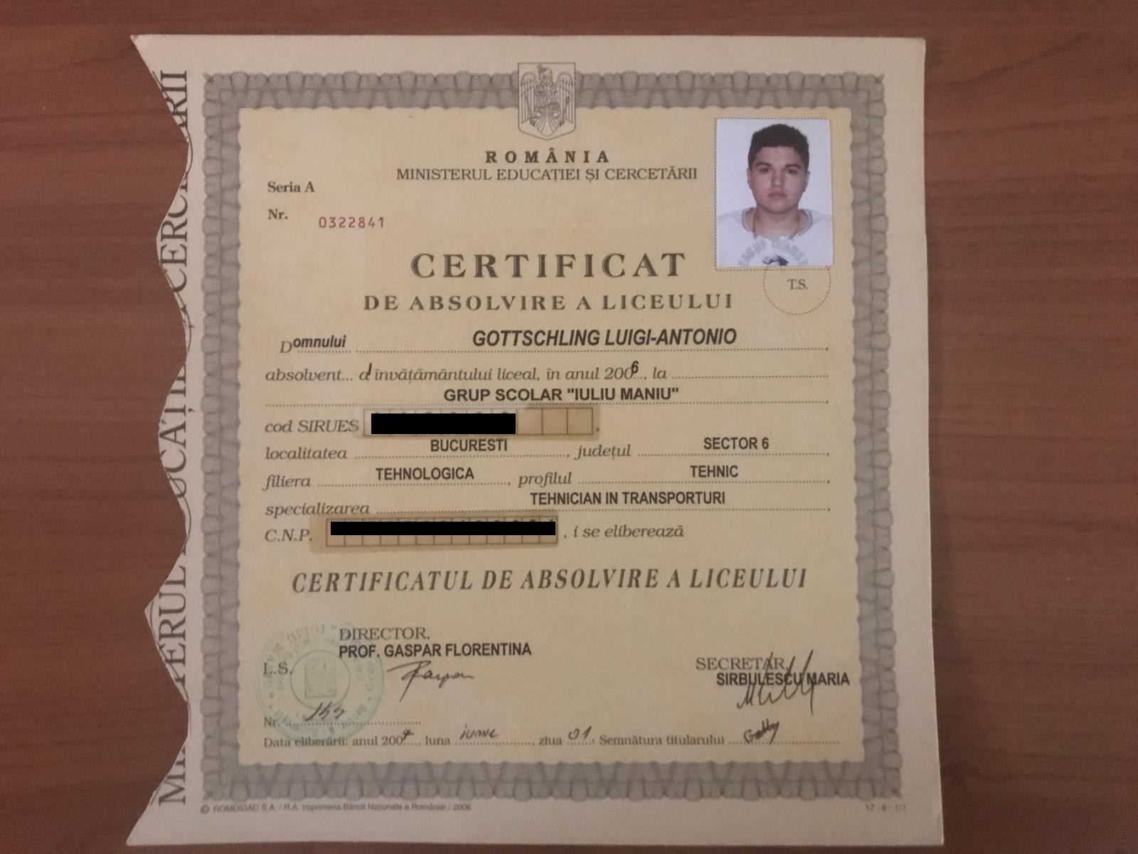 Dovada că Antonio a luat până la urmă examenul de bacalaureat