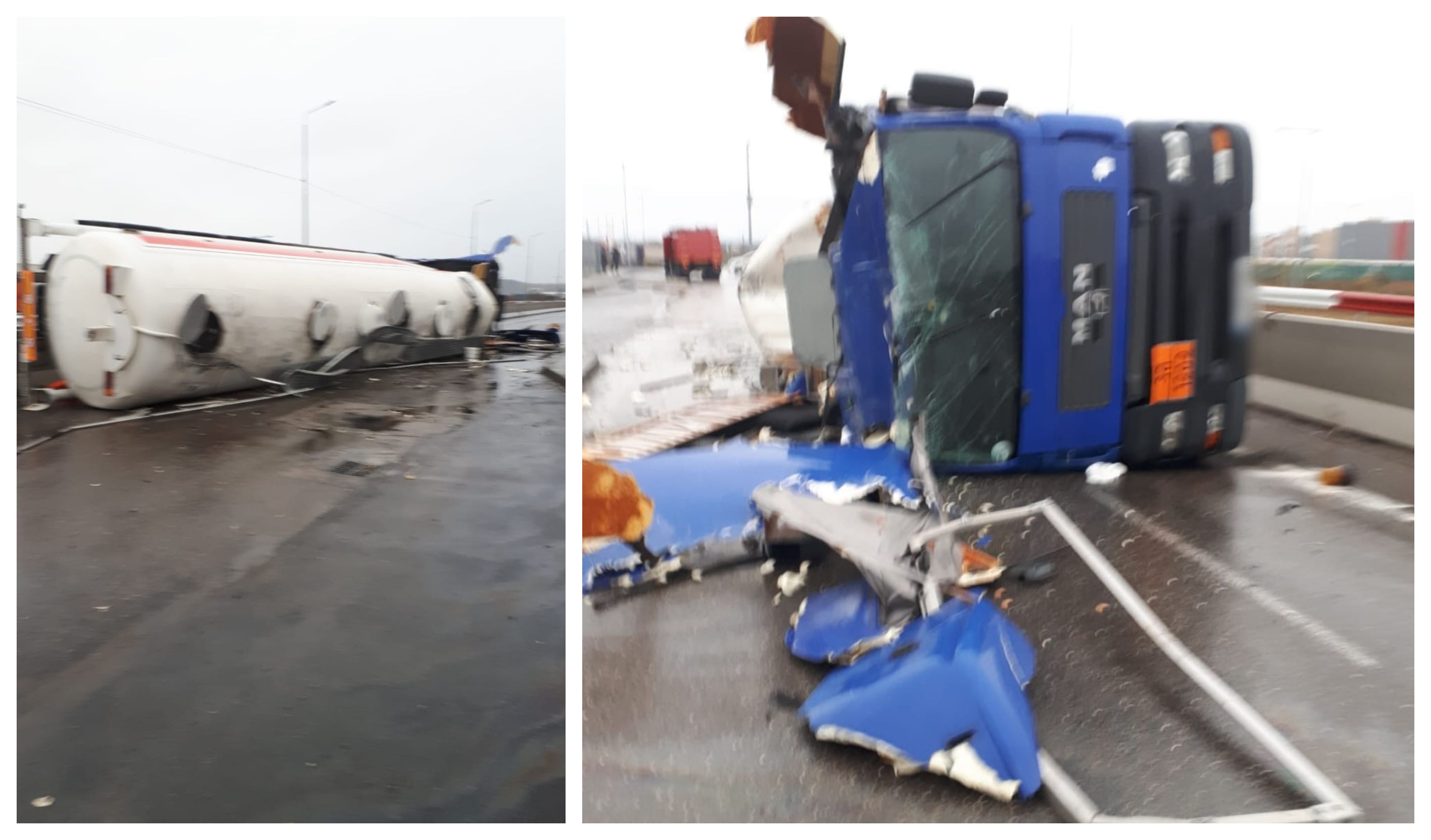 Șoferul unei cisterne pline cu motorină s-a răsturnat în Prahova și a distrus 2 TIR-uri parcate