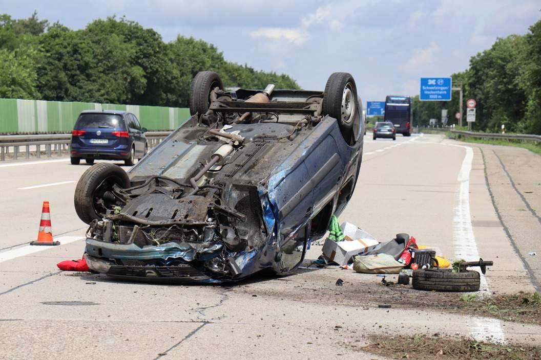 Șoferul unui Logan MCV, cursă haotică pe o autostradă din Germania. A mers cu 180 km/h și a făcut accident, fiind urmărit de 20 de mașini de poliție. Sursa foto: Heidelberg24.de