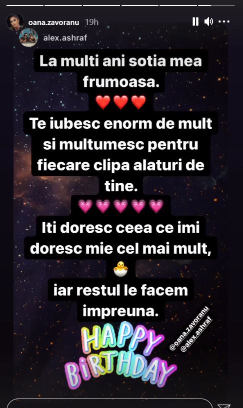 Mesajul lui Alex pentru Oana, de ziua ei