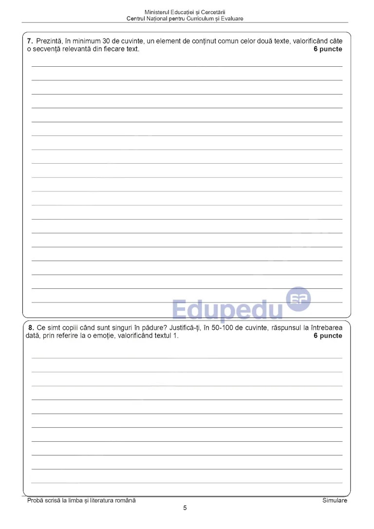 Subiectele de la Simularea Evaluării Naționale. Ce au avut de rezolvat elevii clasei a VIII-a la proba de Limba și literatura română
