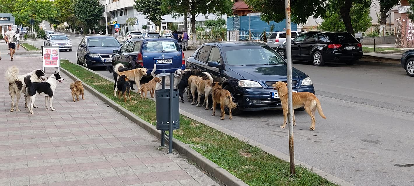 Sute de câini vagabonzi bântuie pe străzile din Caracal, oamenii sunt disperați