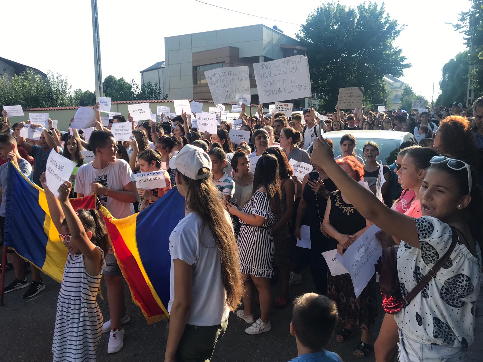 Sute de persoane nemulțumite de ancheta în cazul crimelor protestează la Poliția din Caracal