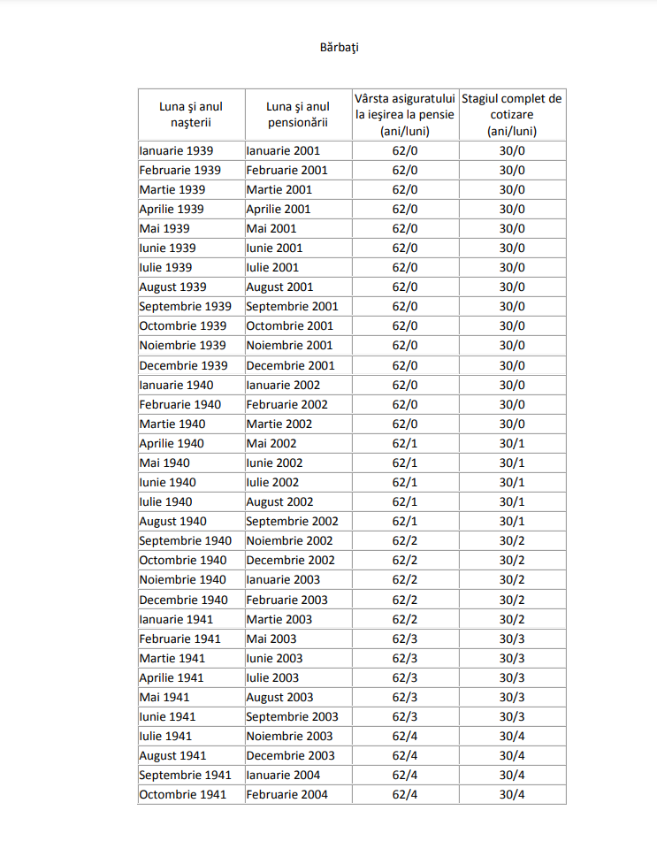 Tabel complet pentru femei și bărbați | Ce pensie vei primi, în funcție de luna și anul nașterii și de stagiul complet de cotizare