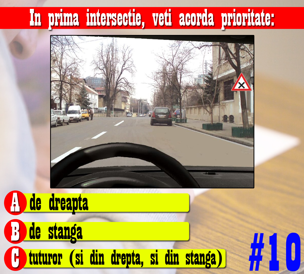 Test auto pentru șoferi, cu 10 chestionare | Primul: Care dintre cele 4 autovehicule au prioritate la trecere?