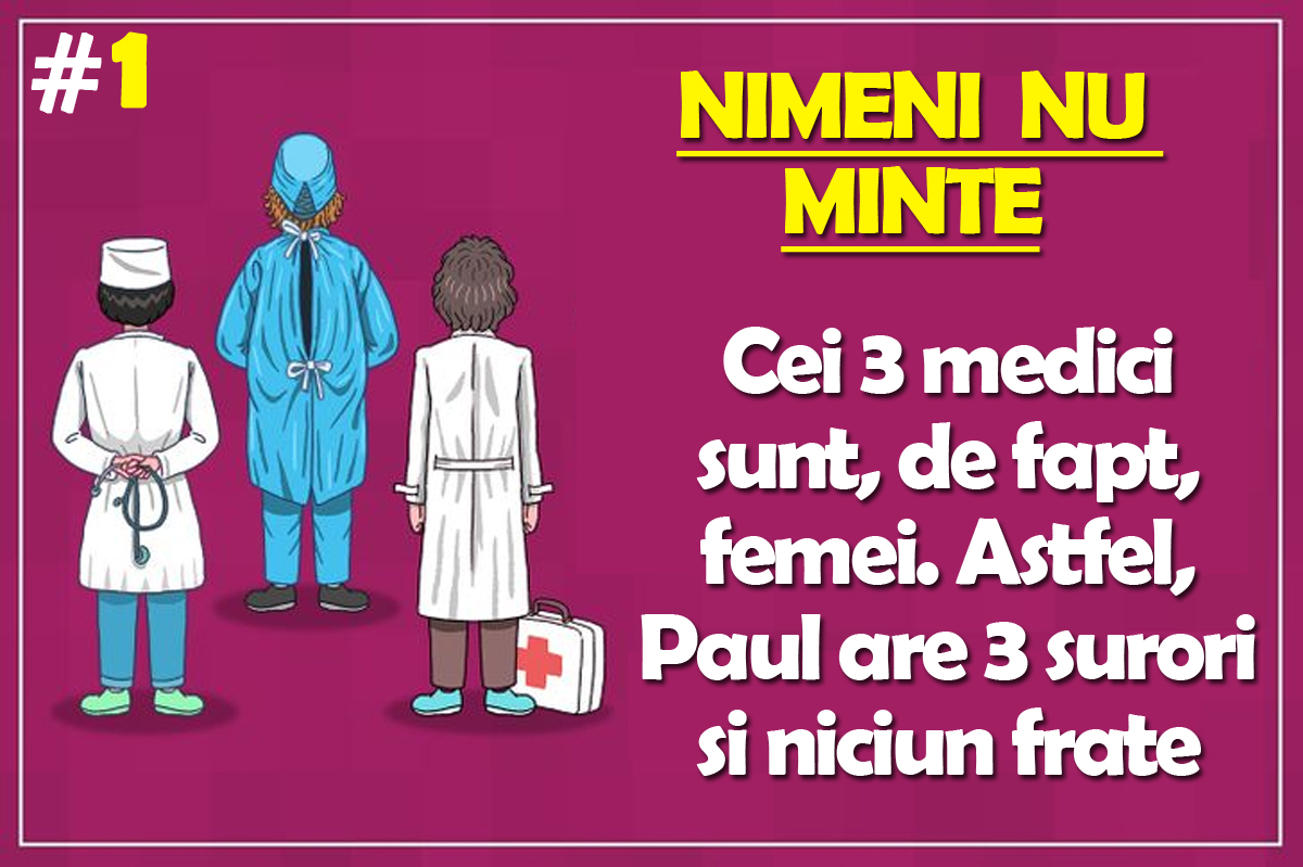 TEST IQ cu 10 întrebări | Prima: 3 medici susțin că Paul e fratele lor. Paul spune, însă, că nu are niciun frate. Cine minte?