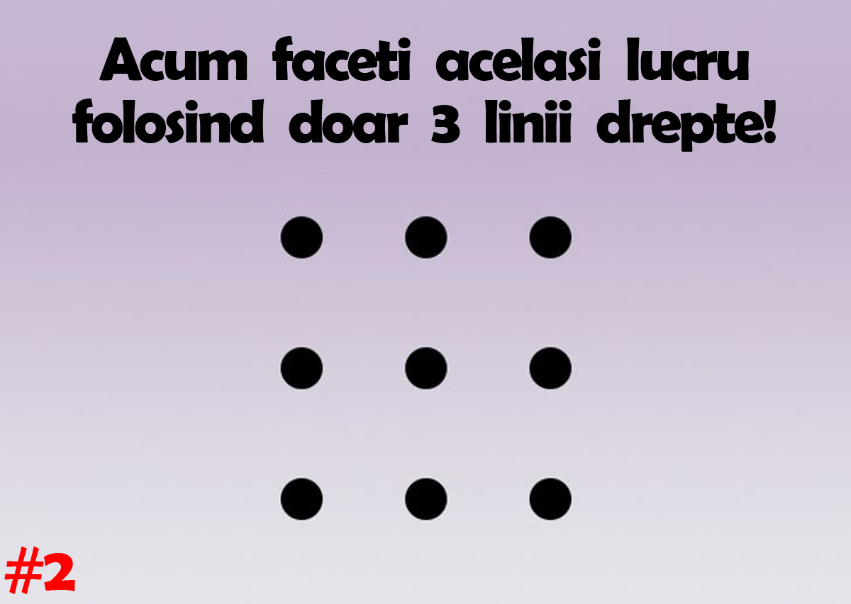 Test IQ cu 10 probleme | Prima: Uniți toate cele 9 puncte, folosind 4 linii drepte, fără a ridica pixul de pe foaie!