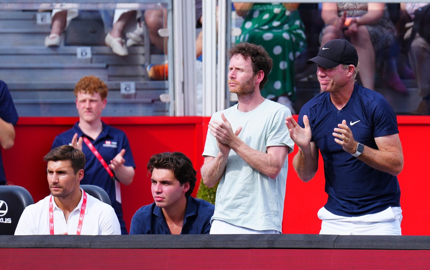 Thomas Houchin, Benjamin Heynold, Nick Cavaday si Mark Petchey pe banca echipei Emmei Raducanu. Foto: Profimedia