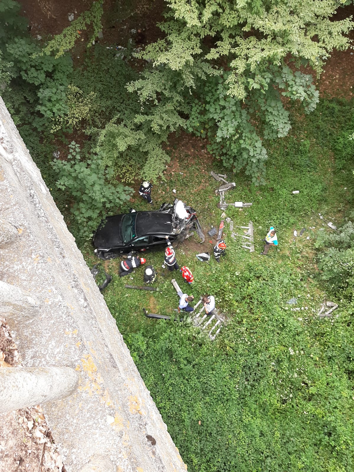 Un adolescent de 16 ani a sărit cu mașina de pe un pod, de la o înălțime de 20 de metri, în județul Vâlcea