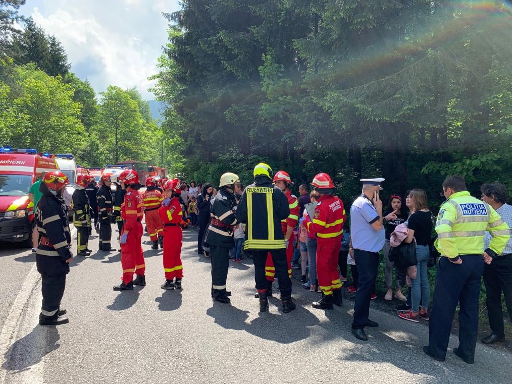 Un autocar cu 50 de copii și adulți s-a răsturnat pe DN 73, între Pârâul Rece și Râșnov. PLANUL ROȘU activat