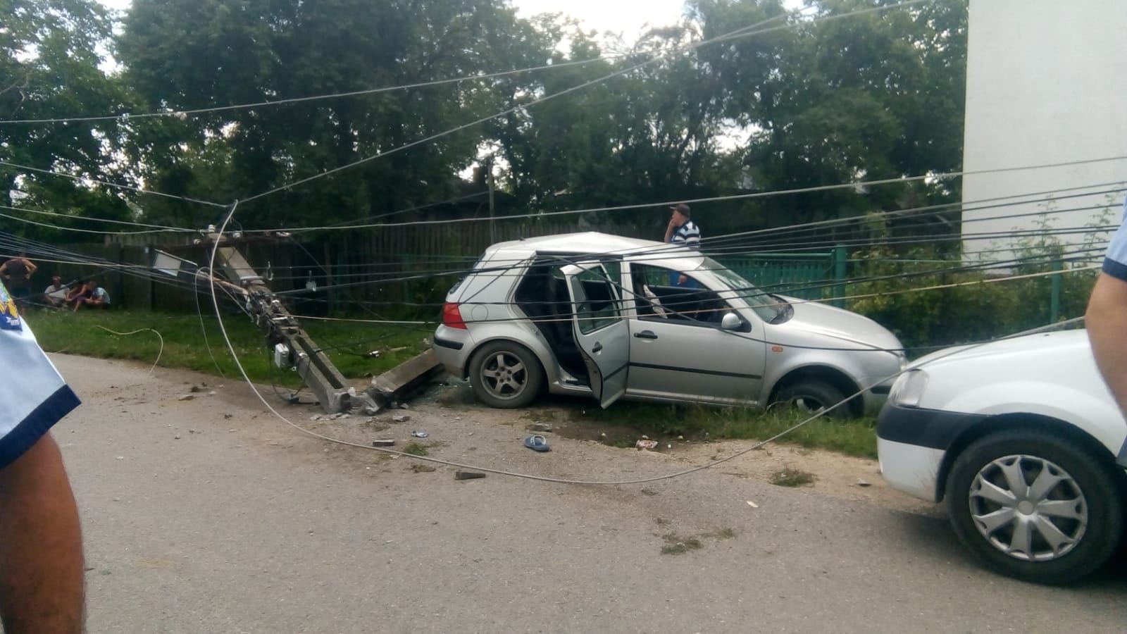 Copilul de 14 ani a intrat cu mașina direct în stâlp