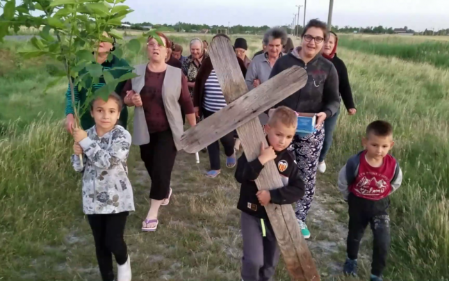 Un copil din Bărăgan a fost pus să care o cruce grea din lemn, într-un ritual de invocare a ploii