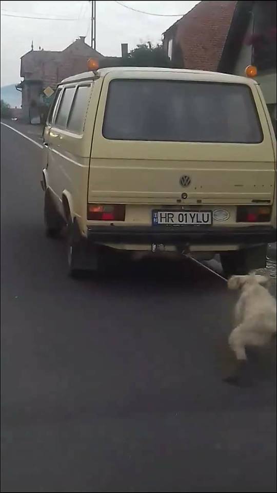 Un șofer din Harghita și-a legat câinele de mașină și la târât pe șosea! Imagini înfiorătoare
