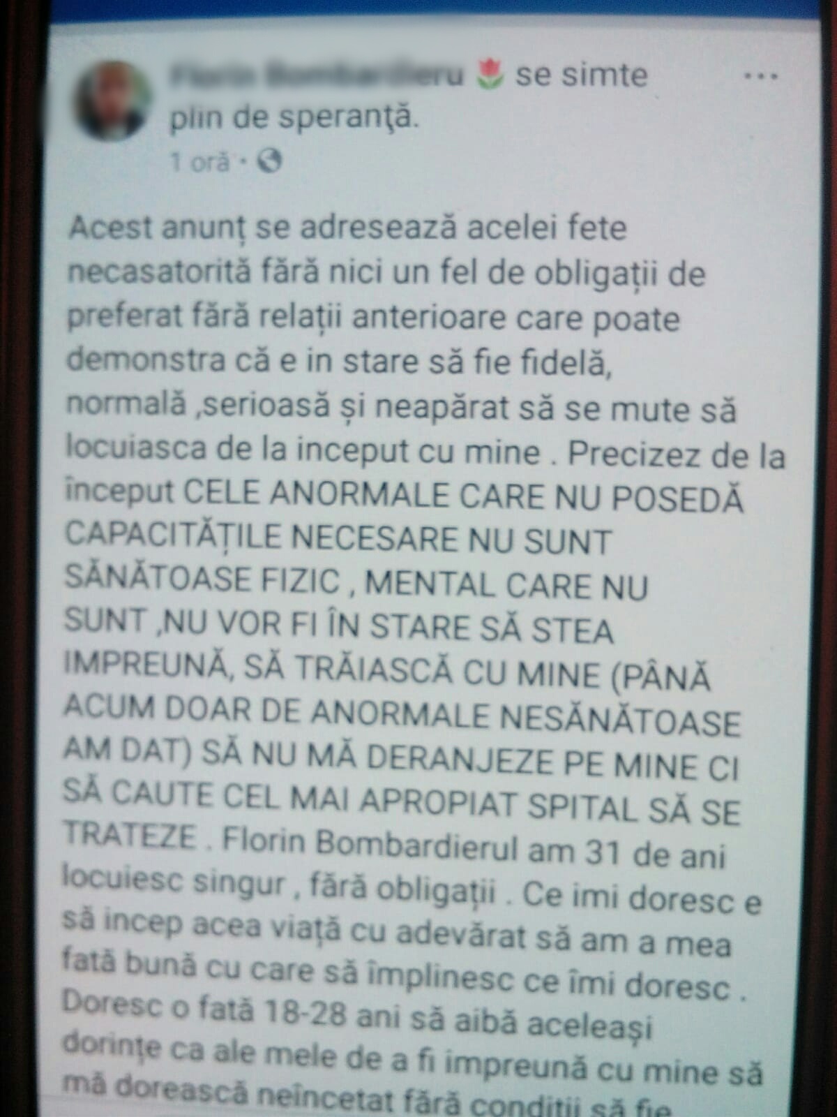 Un tânăr din Alexandria își caută mireasă pe Facebook: „Cele anormale să nu mă deranjeze…”