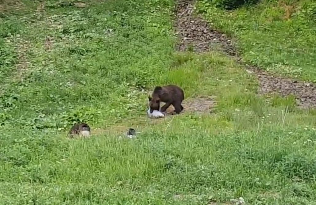 Un urs a fost surprins în timp căra ce saci de gunoi spre pădure, în Prahova