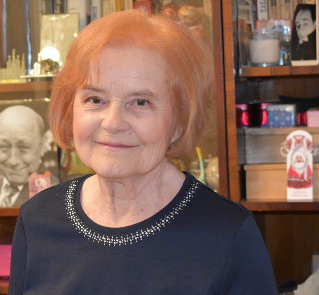 Lucia Moraru, în propria sufragerie, cu fotografia soțului pe fundal / Sursă foto: Facebook