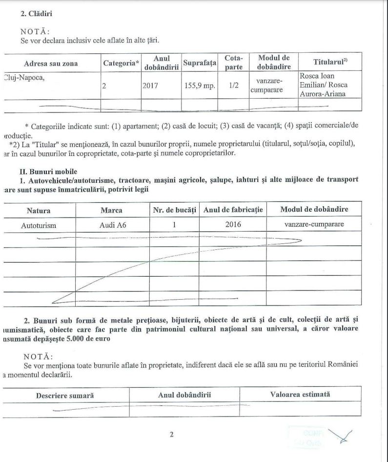 Declarația de avere a Aurorei Roșca