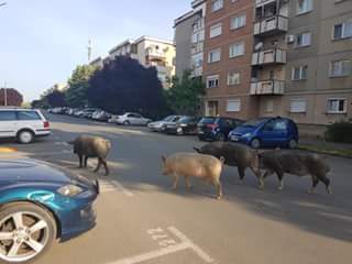 Turmă de porci pe stradă, în Arad