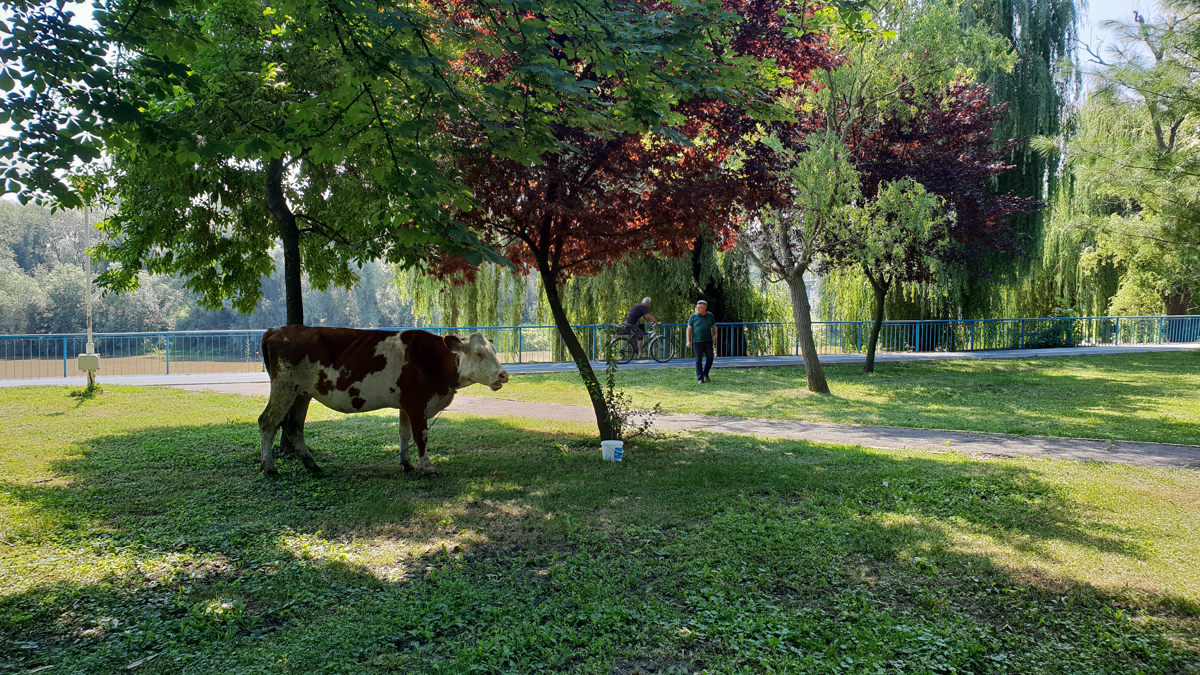 Vaca a fost prinsă în parc