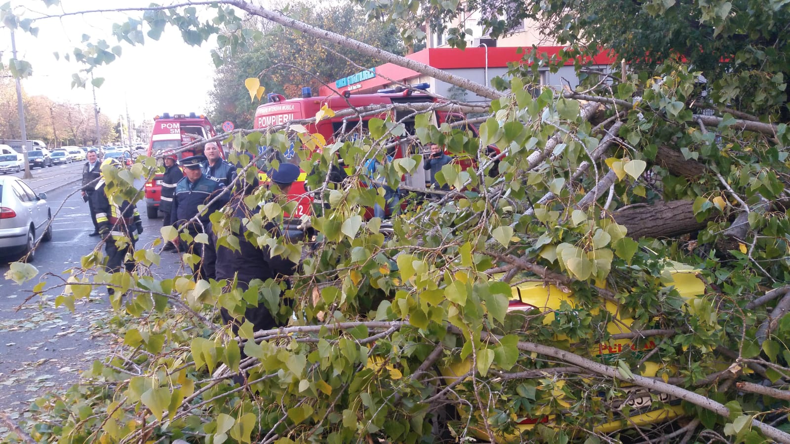 VIDEO. Bărbat rănit grav în București, de un copac care a căzut peste un taxi