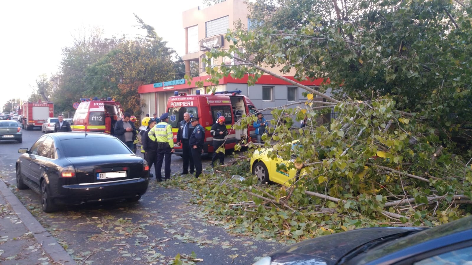 VIDEO. Bărbat rănit grav în București, de un copac care a căzut peste un taxi