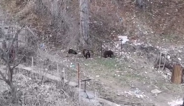 Cei trei urși au coborât după hrană în oraș