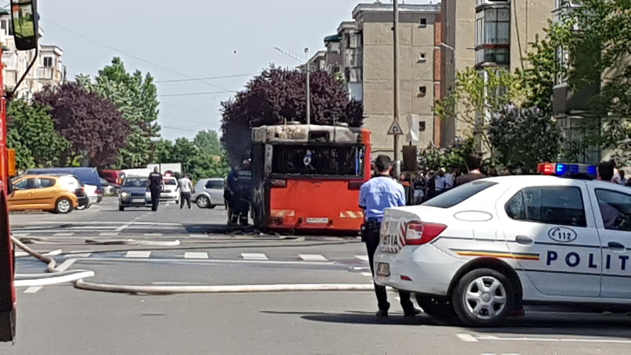 VIDEO. Un autobuz a luat foc și a explodat, în Arad, lângă un bloc. Mărturii exclusive