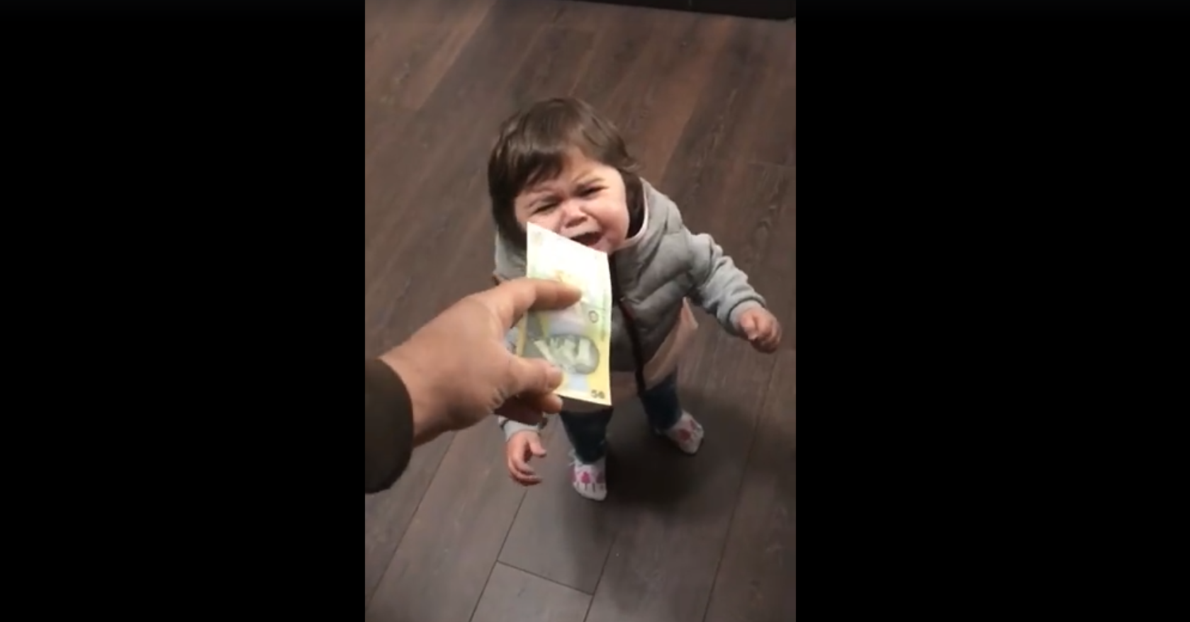 VIDEO VIRAL | Cum reacționează o fetiță de un an din Iași când tatăl ei îi da 200, 100 și 50 de lei. Dar să vezi cum face când primește doar 1 leu