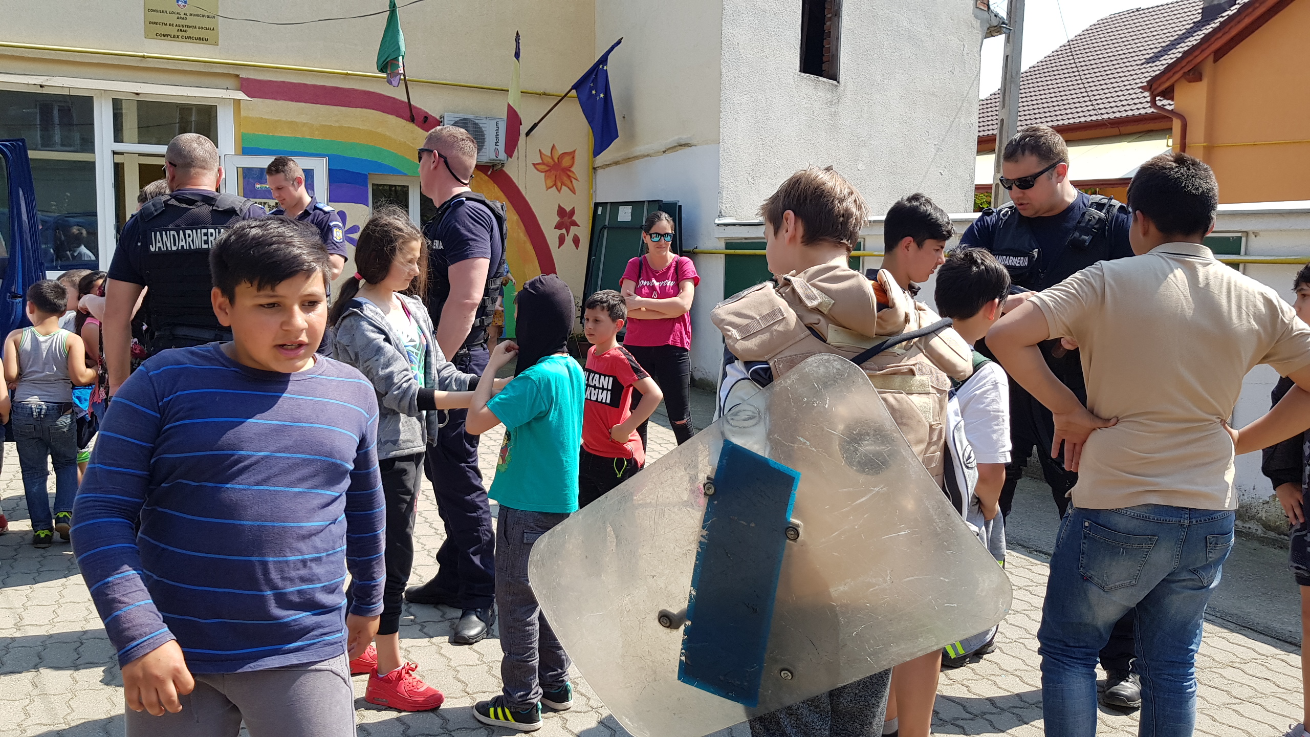 VIDEO. Zeci de copii din Arad au fost lăsați să se joace cu arme adevărate, apoi au fost băgați în dubele Jandarmeriei