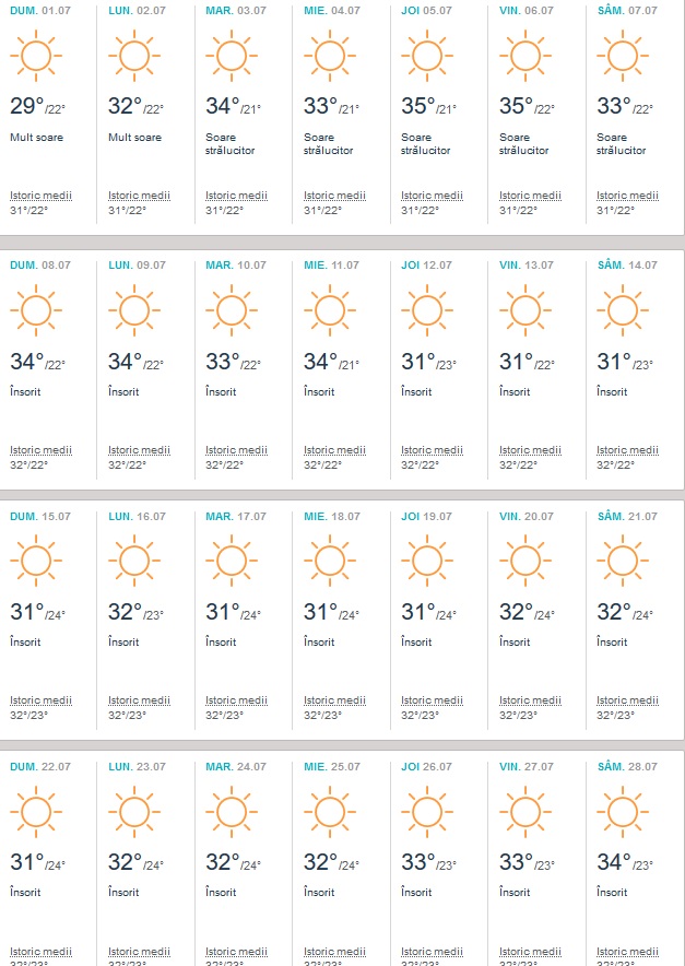Vremea în Insula Kos în perioada 27 iunie-4 august 2018. Sursa foto: accuweather.com