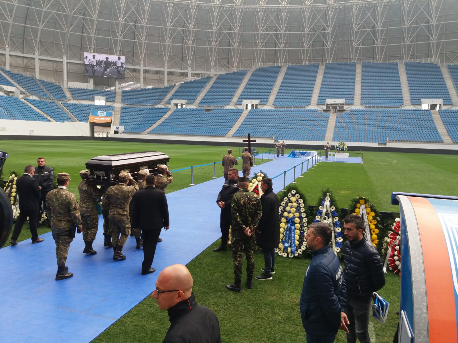 Sicriul a fost depus pe stadion