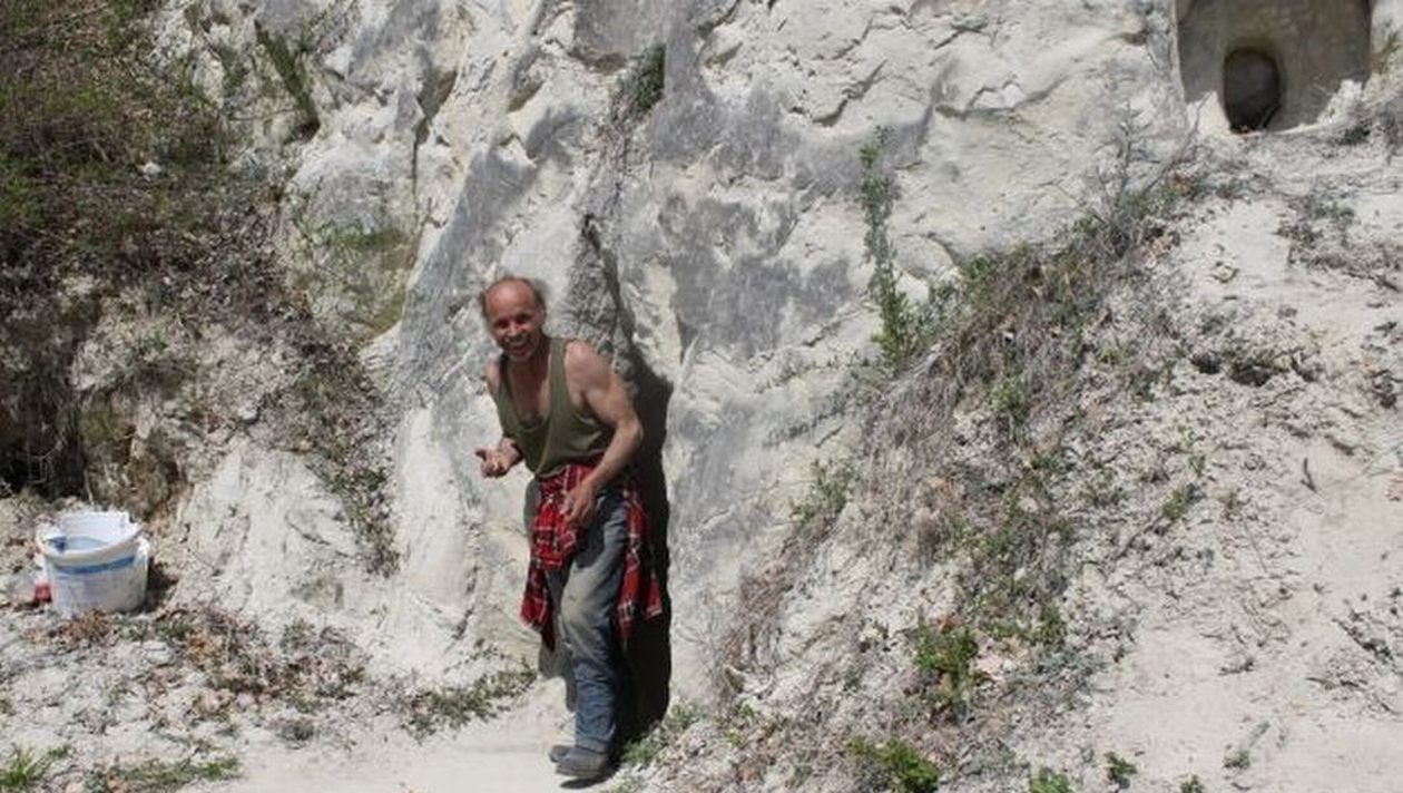 Un bărbat din comuna Tătaru, judeţul Prahova, şi-a săpat o locuinţă într-o stâncă, folosind târnăcoape făcute de el.