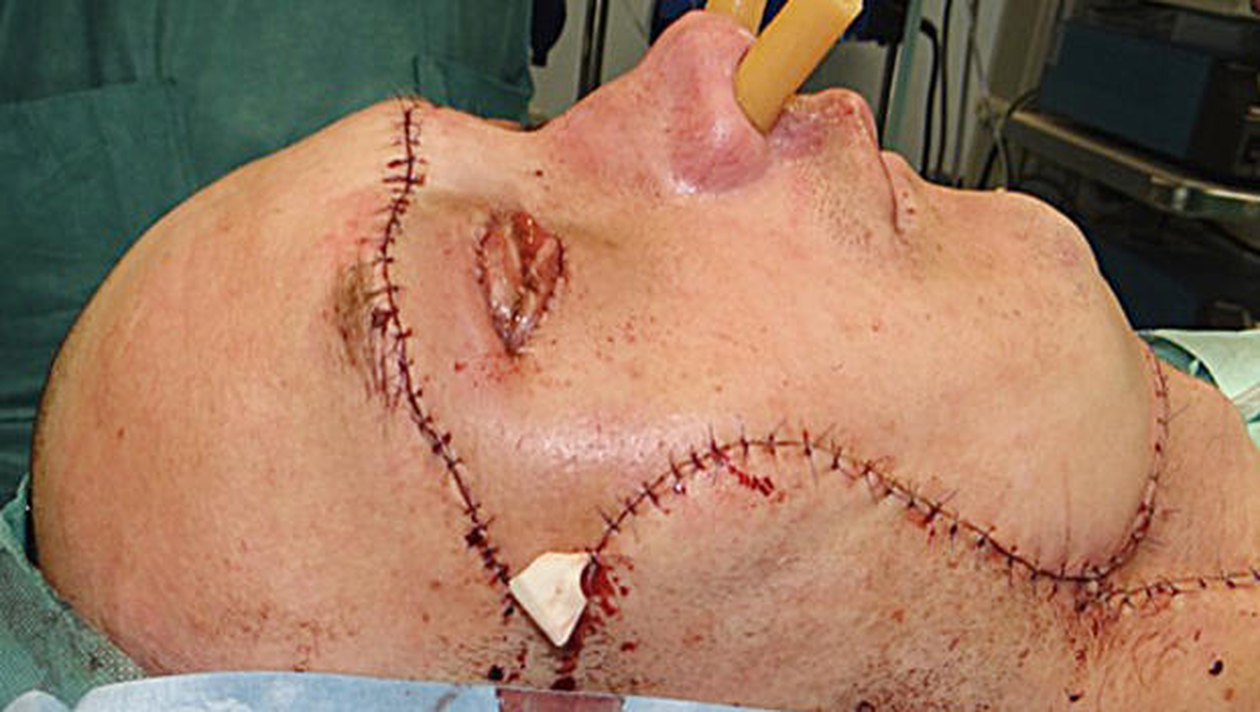 Pacientul a ajuns la spital in stare gravă după ce, acum o lună, i-a fost smulsă o mare pare din faţă, intr-un accident. Operatia prin care medicii i-au făcut un transplant de faţă a durat 27 de ore si s-a efectuat cu acordul pacientului.