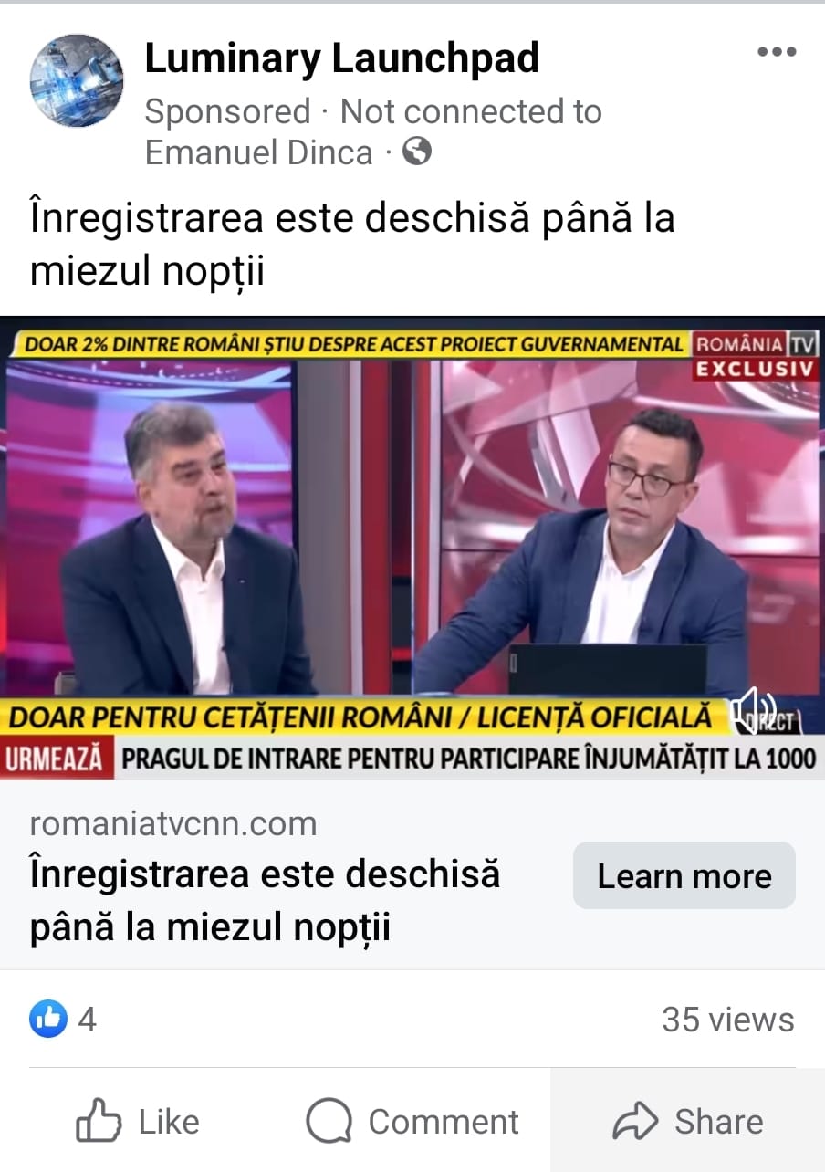 Așadar, este vorba de o escrocherie tip cumpărare de acțiuni sau crypto monede. Linkul din descrierea imaginilor postate pe Facebook duc la un site clonă cu cel al România TV. Totul este prezentat ca un proiect de lege care ar fi fost deja aprobat de Guvern, lucru care este în totalitate fals.