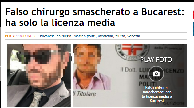 Scandalul săptămânii din România a ajuns și în Italia. Matteo Politi, alias Matthew Mode, supranumit ”Medicul cu 8 clase”, a intrat în vizorul jurnaliștilor italieni, iar concluziile lor nu-i sunt favorabile.