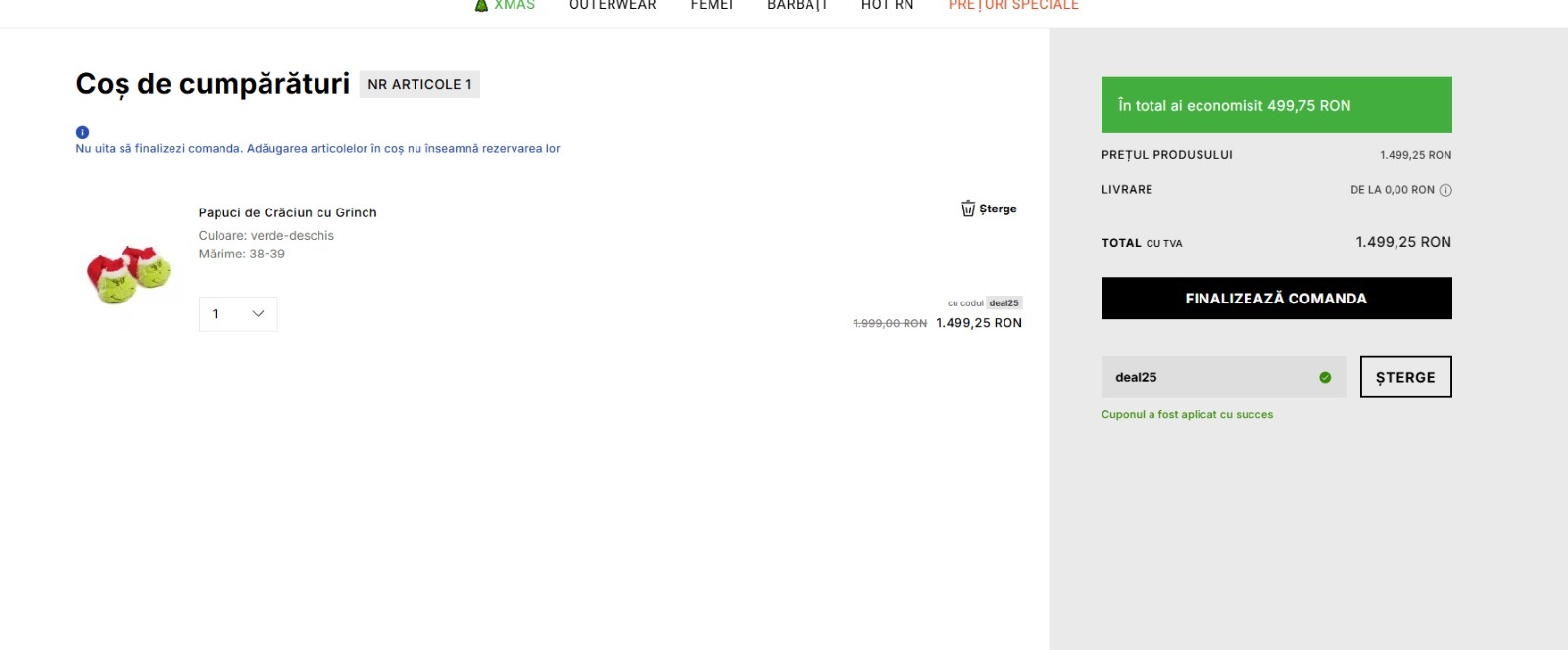 Ei bine, deși mulți ar crede că această pereche nu are cum să coste prea mult, cei care au pus ochii pe ei trebuie să știe că o să scoată din buzunar 1.499 de lei. Iar dacă acest preț pare mare, mai trebuie menționat că acesta este obținut după ce a fost aplicată o reducere de 25%, căci prețul lor inițial era de 1.999 lei. În acest context, poate niște papuci cu Grinch nu sunt chiar o opțiune bună de cadou și poate cei cu Moș Crăciun au un preț mai redus.