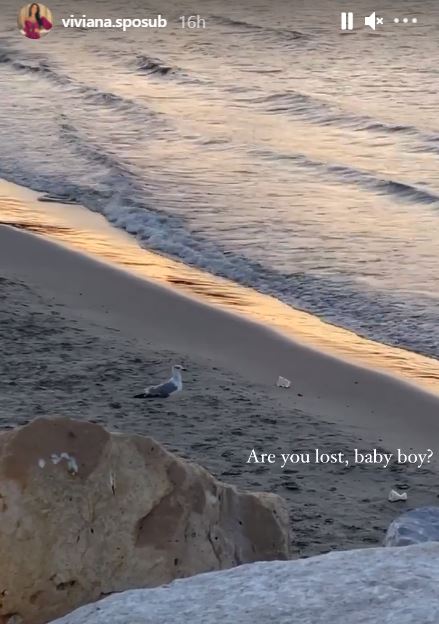Într-un alt story, Viviana a postat o imagine de pe litoral, cu un porumbel pe plajă, în dreptul căruia a scris „Are you lost baby boy?”-„Te-ai pierdut, dragule?”