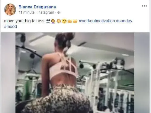 Știrea inițială: După care a ales să meargă la sala de forță. Pentru că trupul pe care îl are trebuie întreținut. Sub privirile antrenorului personal, Bianca Drăgușanu a făcut mai multe exerciții, pentru a se menține în formă. A cerut să fie filmată, iar clipul l-a urcat pe contul personal de socializare.