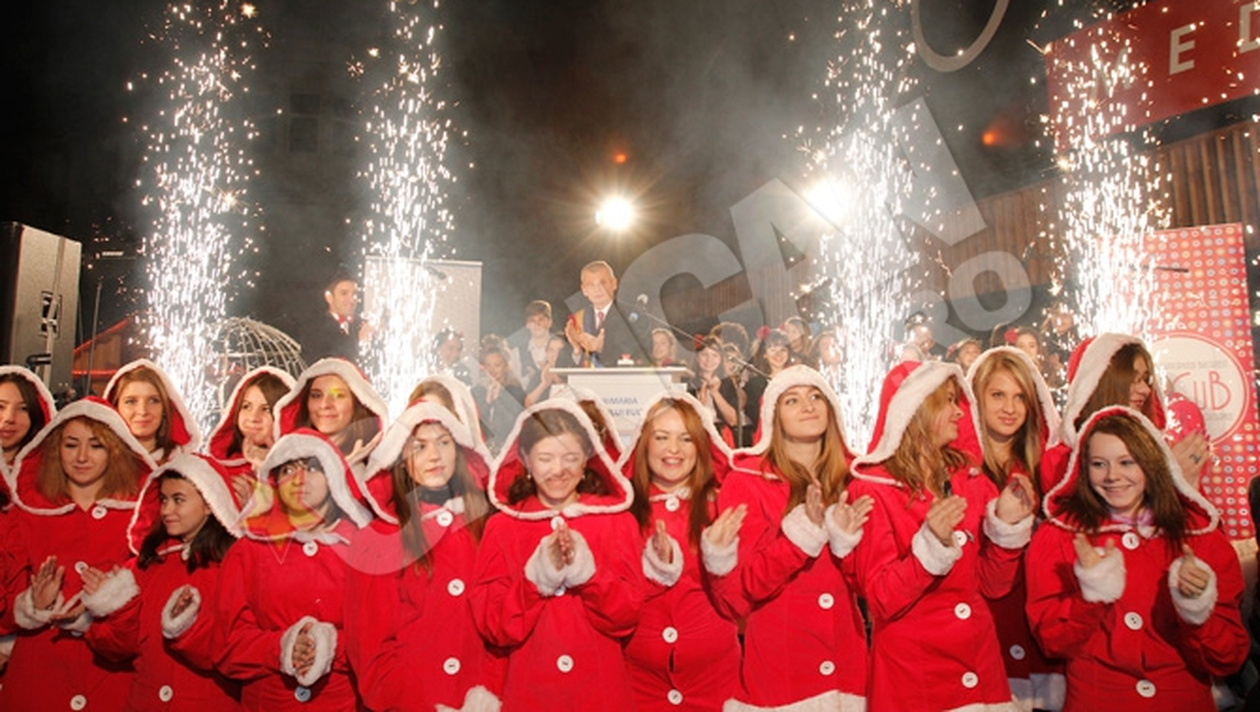 Startul sarbatorilor de iarna in Capitala a fost dat de primarul Sorin Oprescu la ora 18.30, din Piata Timpului, evenimentul fiind transmis live pe fatada magazinului Cocor.