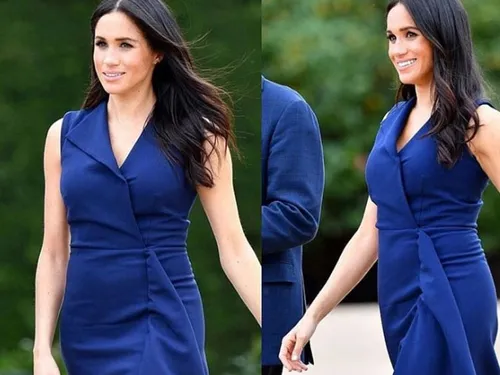 Meghan Markle ieșit din nou în lumina reflectoarelor, grație unei rochii de culoare bleumarin, care face parte din colectia de primavara 2019 a unui designer australian.