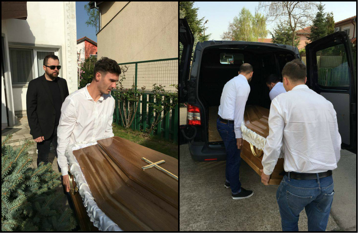 Atât soţia, cât şi fiul lui Patrichi poartă ochelari de soare, probabil pentru a-şi ascunde cearcănele şi ochii plini de lacrimi. Chiar şi persoanele care cară sicriul par foarte afectate de moartea coregrafului. După ora 19.00, trupul neînsufleţit al coregrafului va fi transportat la capela din Pipera, unde Gigi Becali i-a oferit locul de veci.