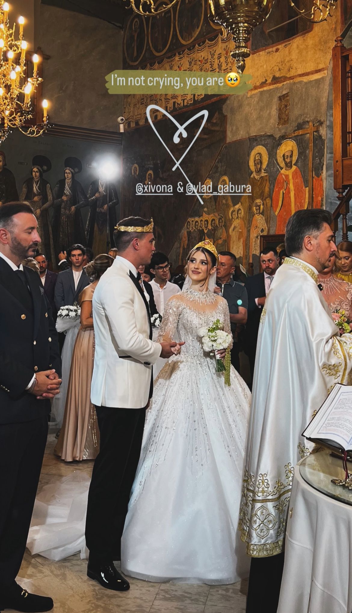 La evenimentul important sunt prezente sute de persoane, printre care și colegii de breaslă ai tatălui său. Axinte alături de soția lui, dar și mulți alți. Într-un filmuleț postat pe rețelele de socializare, observăm cum mama miresei este copleșită de emoții, iar socrul mic, Mugur Mihăescu se distrează la cote maxime!