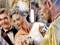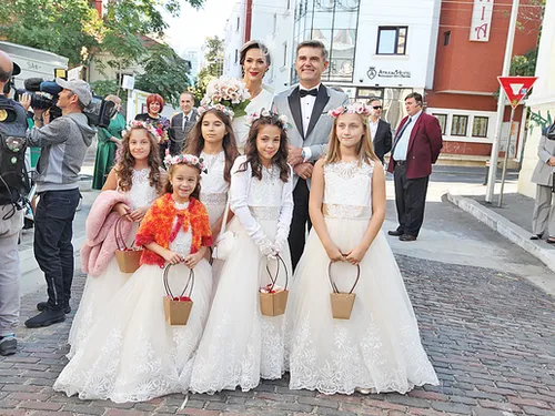Roxana Ciuhulescu a strălucit de-a dreptul într-o rochie semnată Athena Philip, , accesorizată cu voaletă, şi buchetul din orhidee imperiale. Mirii au fost conduşi la altar de naşii lor, preşedintele Federaţiei de Fitness şi Culturism din România, Gabriel Toncean, şi soţia sa, Simona.
